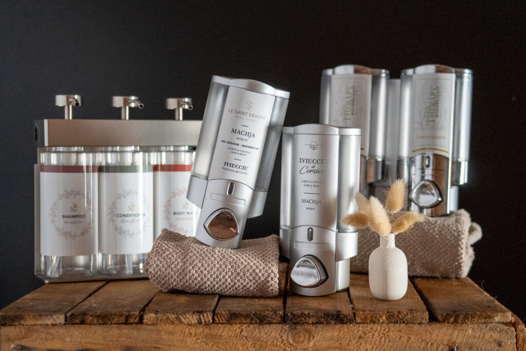 Parfums d’ici vous propose des produits élégants, économiques et écoresponsables pour l’hôtellerie : Cosmétiques 5L, distributeurs rechargeables, diffuseurs et bougies personnalisées.