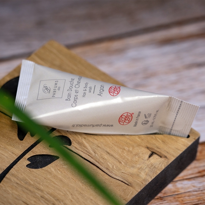 Offrez à vos clients l’excellence du soin biologique dans un format qui protège la planète. Notre Gel Corps & Cheveux Argan en berlingot de 23 ml, certifié BIO, est la solution d’accueil de très haute qualité et éco-responsable idéale pour les établissements haut de gamme.