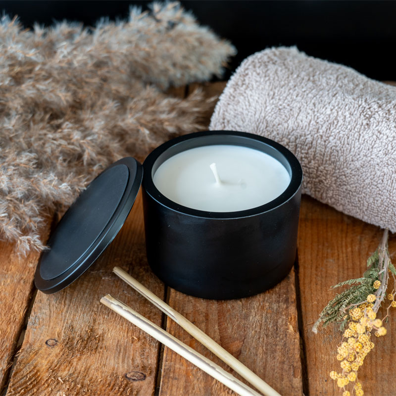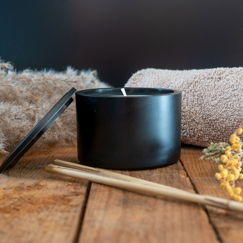 Parfums d’ici – Bougies flacon étui noir mat 120grs – Senteur n°25