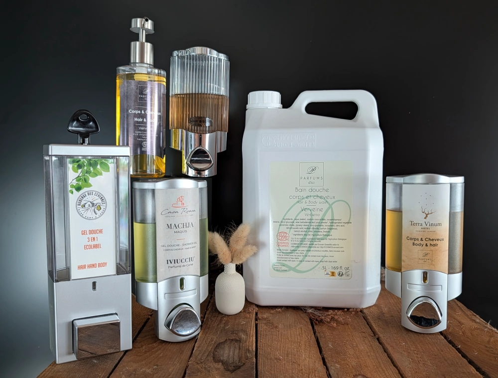 Parfums d’ici vous propose des produits élégants, économiques et écoresponsables pour l’hôtellerie : Cosmétiques 5L, distributeurs rechargeables, diffuseurs et bougies personnalisées.
